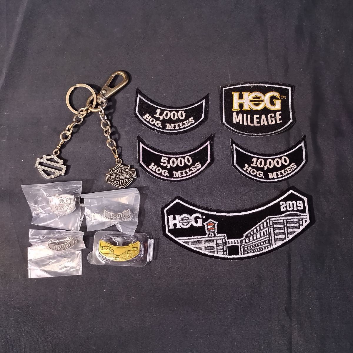 - 【中古】 ハーレーダビッドソン Harley Davidson HOG イヤーズワッペン ピンバッチ キーホルダー 11点セット エンブレム アップリケ(CL2)