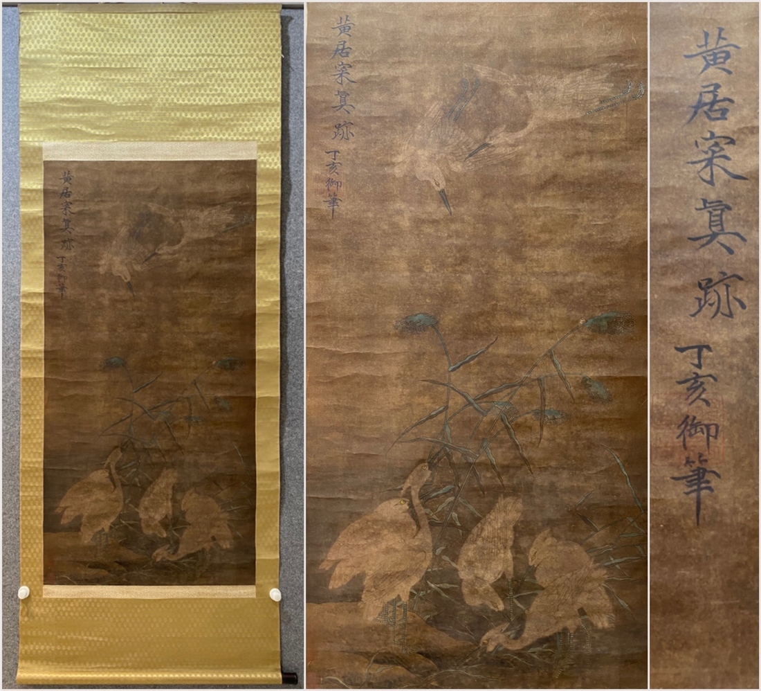 - 古美術 掛け軸 中国・宋時代 「黄居寀書」 絹本 【コウノトリ図】 立軸 書道 巻き物 真筆逸品 肉筆保証 唐物 古画 LT-2409282