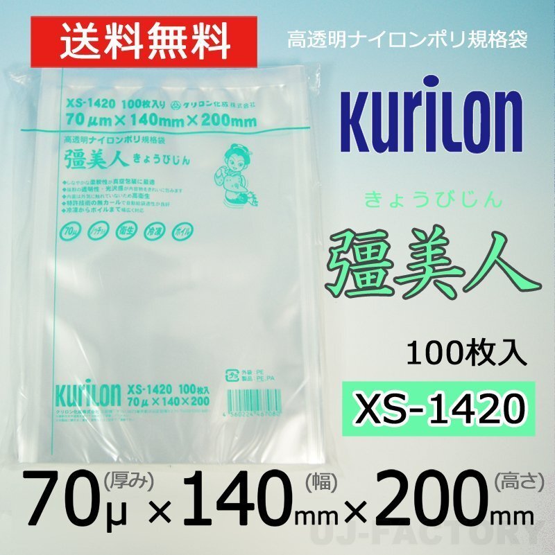 > 【即納!送料無料】彊美人 70ミクロン XS-1420 ナイロンポリ袋/真空袋 (厚み 70μ×幅 140×高さ 200mm)【100枚】★五層構造・三方規格袋