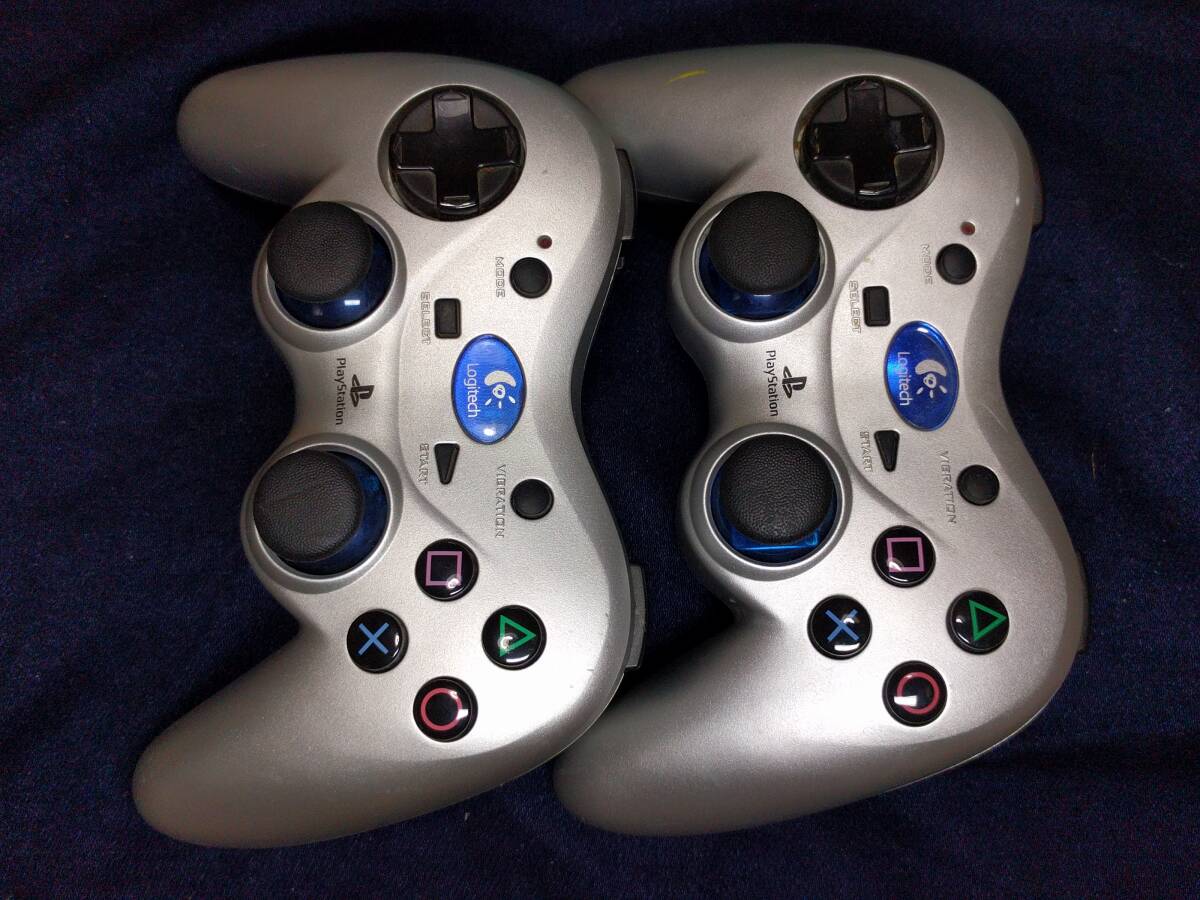 > Logicool ロジクール G-X2D11 PS2用 ワイヤレスコントローラー レシーバーなし シルバー2つ 動作確認済み
