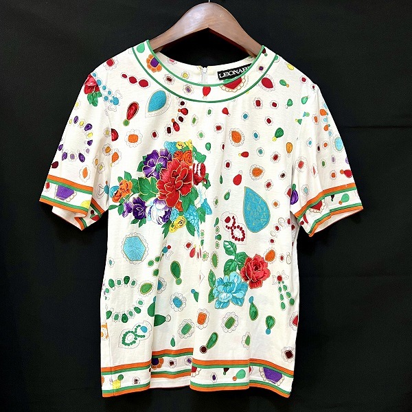 > #sxc レオナール LEONARD カットソー M 白 マルチ 花柄 ジュエリー柄 半袖 バックジップ レディース [893503]