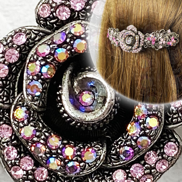 - 送料無料!! ゴージャス!! ローズ バレッタ パーティー 発表会 社交ダンス パーティー 結婚式 ラインストーン 髪飾り まとめ髪