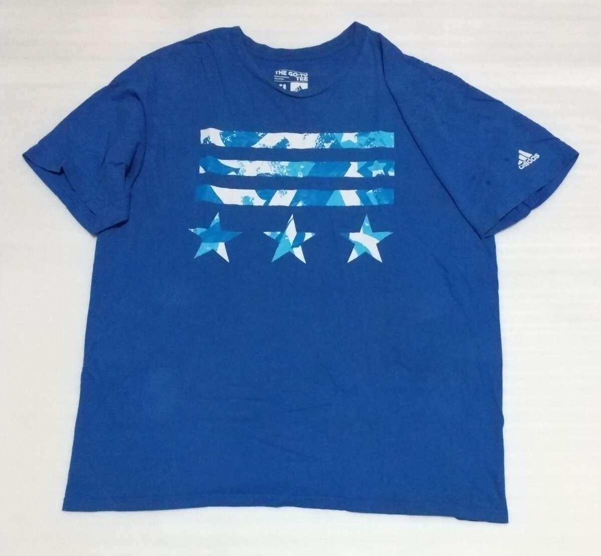 - ☆adidas.com サイズL半袖TシャツTHE GO-TO TEEスポーツ三ツ星3本線ライト水色ブルー青色ウェアCOTTONファッション洗濯済ティー アディダス
