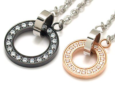 - ★インスタ★金属アレルギー&温泉&海水浴ご使用OK★ステンレスペアネックレス★ブラック&ピンクゴールドサークルリング&ジルコニア★