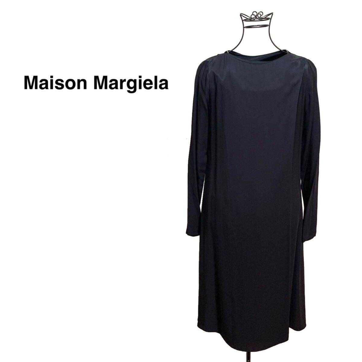 - ☆未使用 Maison Margiela メゾンマルジェラ ドレープ 長袖 ワンピース ドレス 濃紺 イタリア製 MM6 アーティザナル 結婚式 パーティー