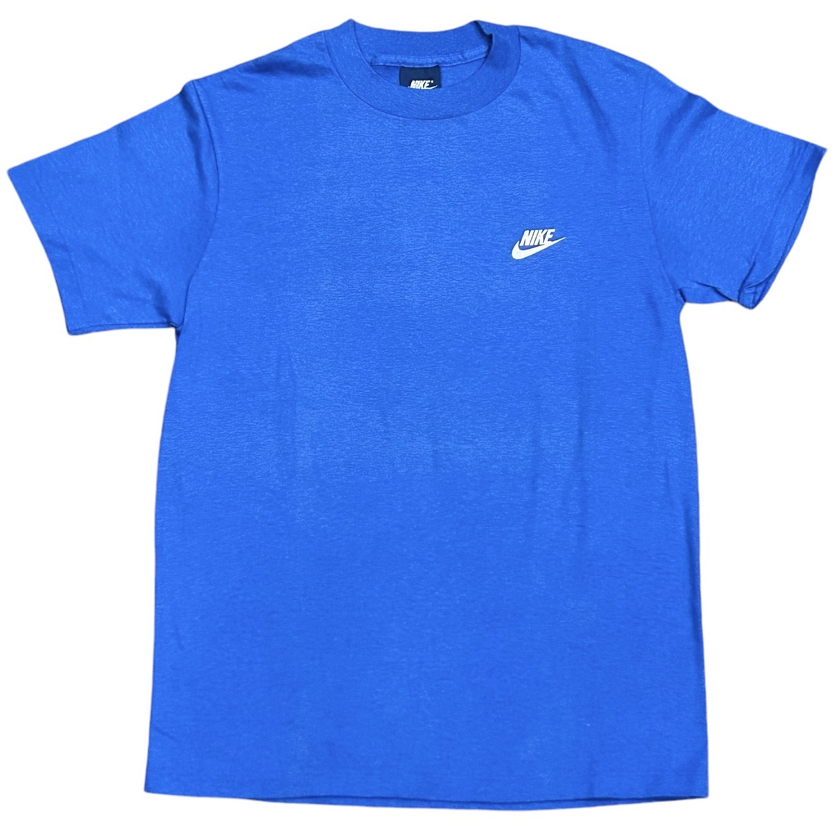 > 良品 ビンテージ レア 80`s NIKE ナイキ 紺タグ ワンポイントロゴ プリントTシャツ USA製 ブルー size S オールド オリジナル 日本 台湾