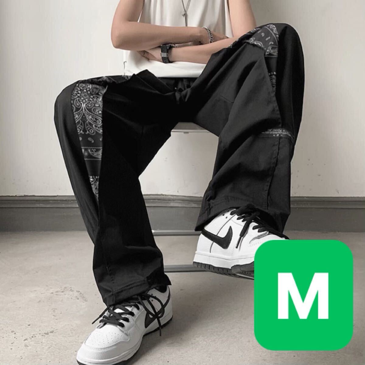- イージーパンツ ペイズリー ワイドパンツ ストレートパンツ ボトムス トレンド ストリート オルチャン メンズ レディース ブラック 黒 M