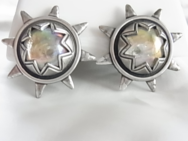 > ♪ビンテージ/ヴィンテージ 個性的なインパクトのあるデザイン シルバートーンに光の加減で色味が変化のオーロラ調カラー イヤリング