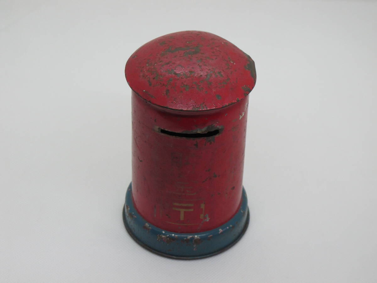 - ★中古・昭和レトロ★ ポスト型ブリキ貯金箱 こども銀行 当時物