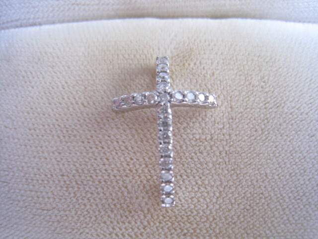 - [SAMU]素敵!!きらきら輝きダイヤモンド0.21ct 十字架 k18WGペンダント★超美品!