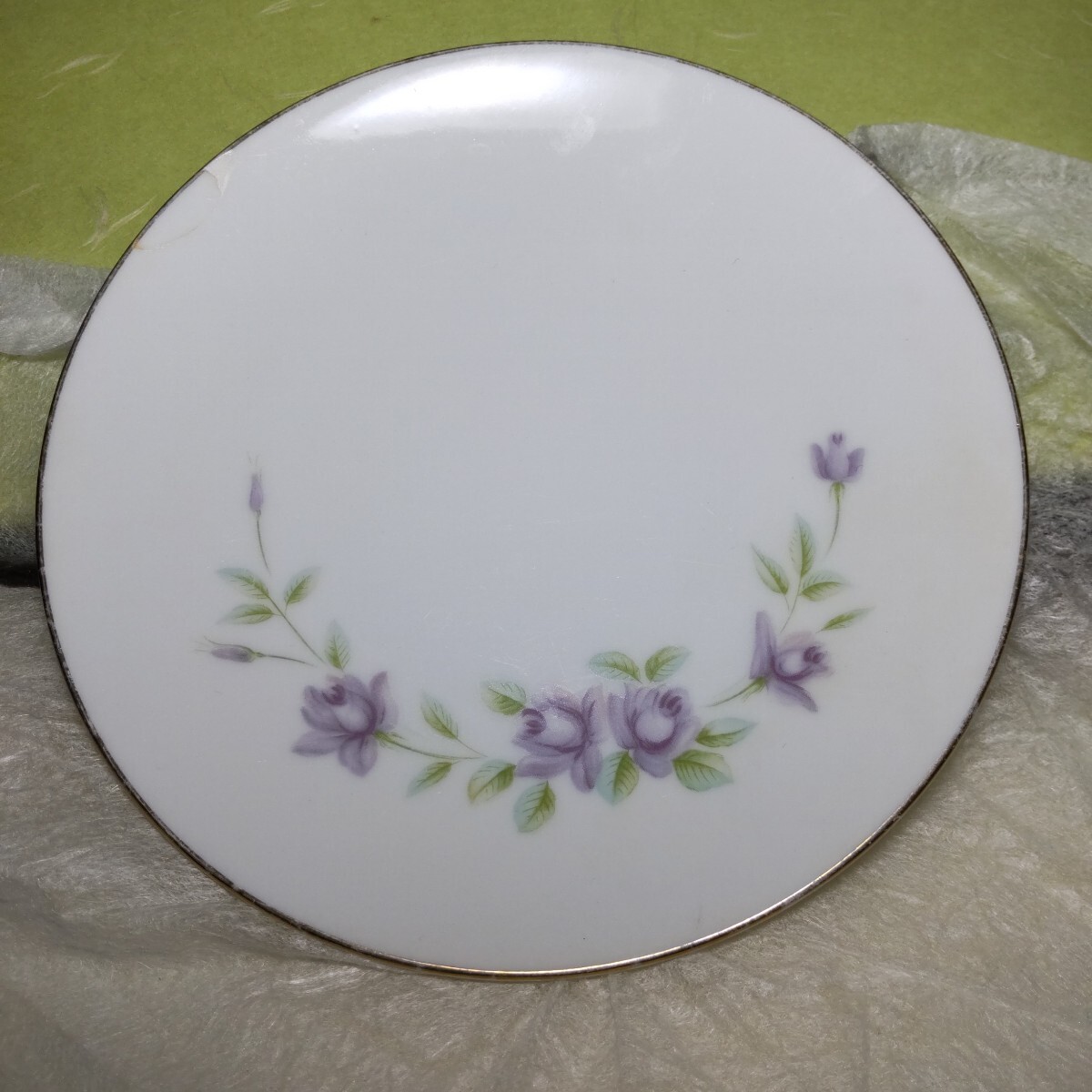 > 【雑貨】 食器 ノリタケ Noritake ファンタジー 小皿 ソーサー 高さ約2㎝ 幅約14.5㎝ 紫色薔薇花葉柄 金縁 プレート 洋食器 ケーキ皿 花柄