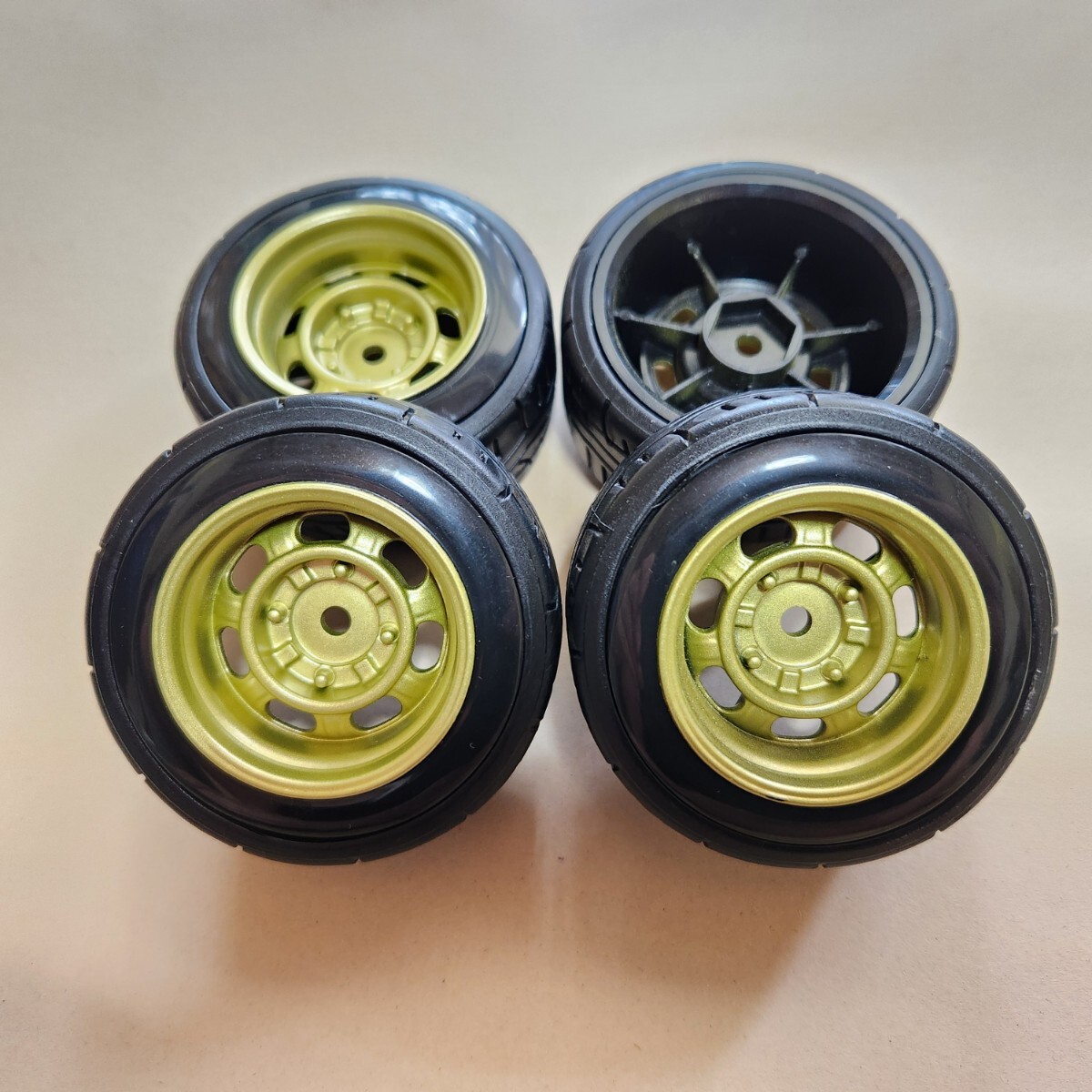 - ●即決価格●送料無料●ドリフトタイヤ付●●鉄チン風●●オフセット9金色●小径● 旧車 ホイール TT02 TT01 D3 D4 D5 YD-2 ラジコン