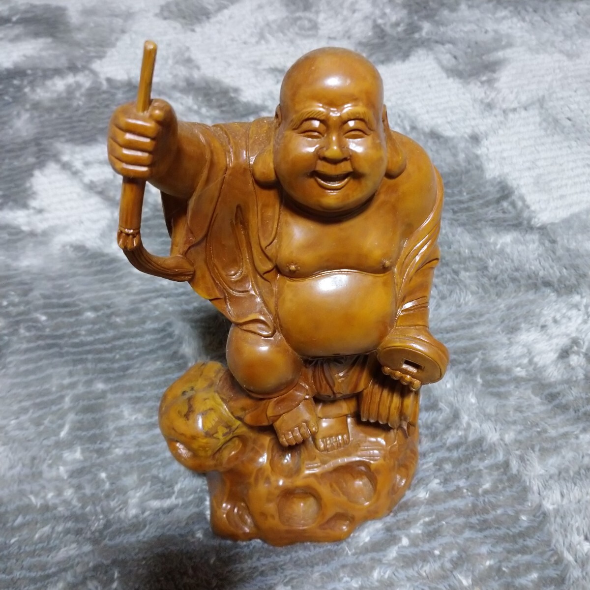 - 即決!木製木彫り七福神布袋様?彫刻置物オブジェ縁起物
