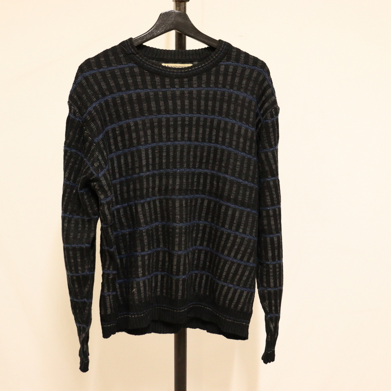 > P685 90sビンテージ MUNSINGWEAR 総柄 アクリルニットセーター■1990年代製 表記Mサイズ 黒 ブラック アメカジ ストリート アンティーク