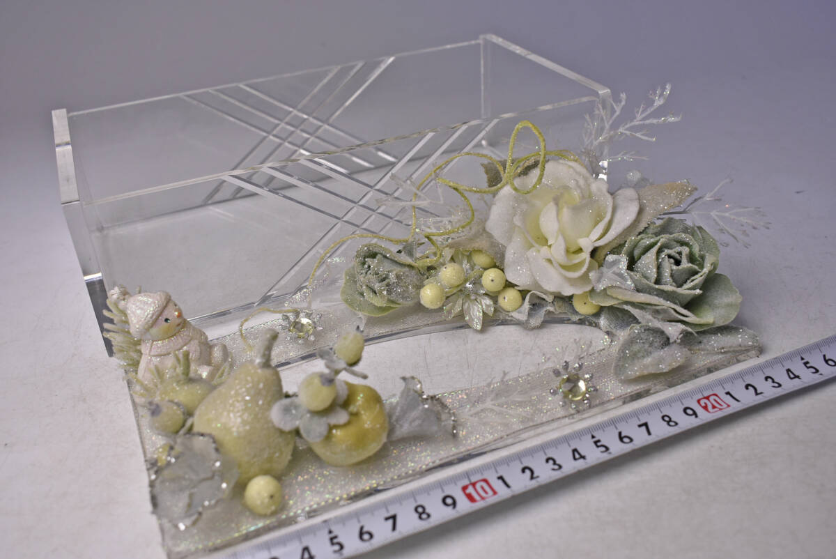 - アクリル ティッシュケース ★ ティッシュ入れ ★ 装飾付きティッシュケース ★ クリスマス仕様 ★ 中古品 ★ 汚れあり