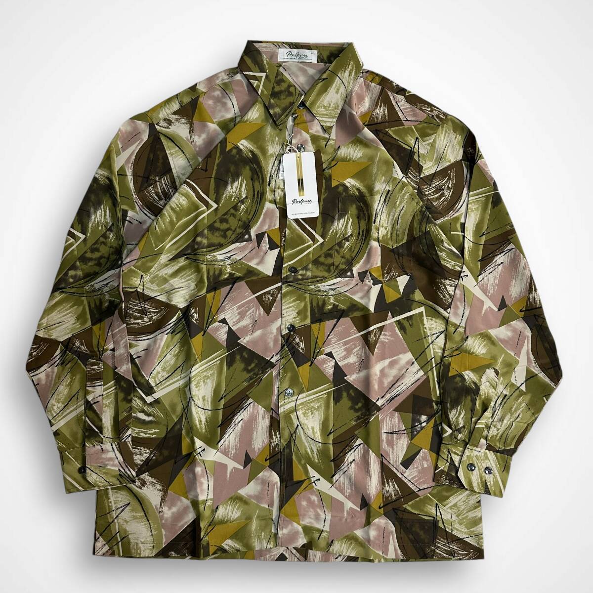 > 未使用【Porlpure】VINTAGE 90s レトロ アートデザイン 総柄 オールド 長袖ポリシャツ デッドストック 古着ミックス 日本製