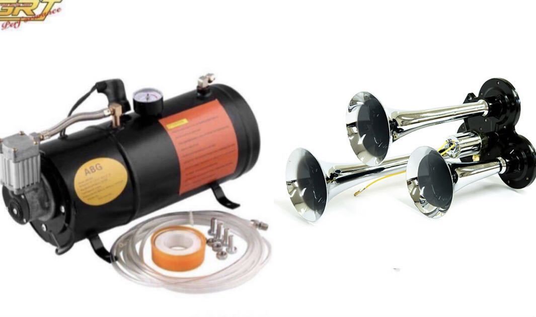 > ヤンキーホーン 3連 コンプレッサー タンク セット DC 12V エアーホーン エコーホーン 大音量 トラック デコトラ