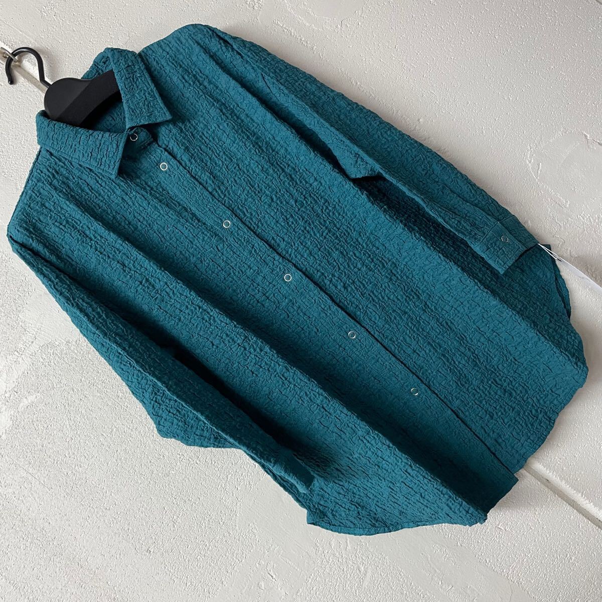 - 表面変化織りシャツジャケット グリーン