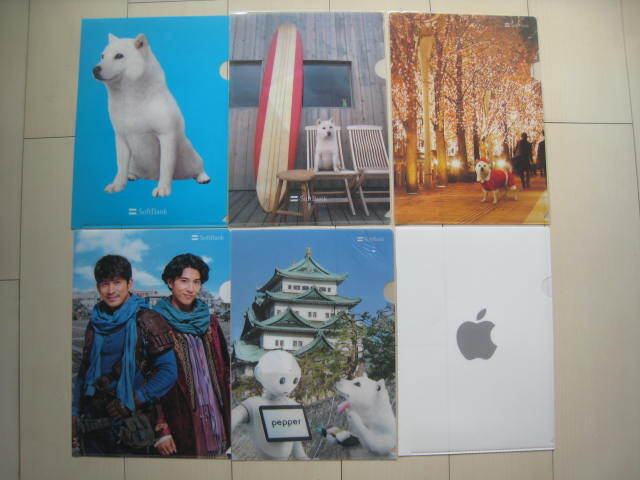- 即決★非売品 ノベルティ/ソフトバンク お父さん 白いお父さん ペッパー君 アップル/A4 約31×22cm クリアファイル 計6枚