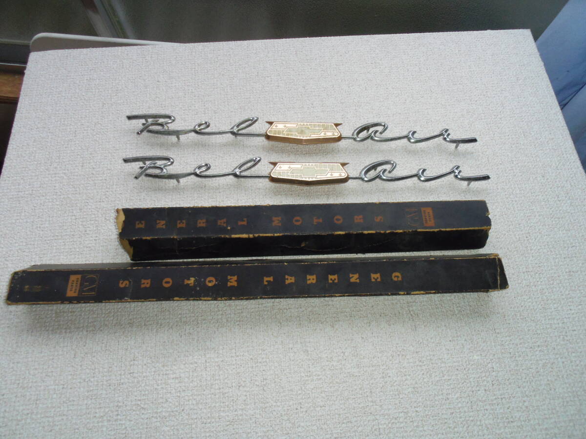 - ベルエアー、GM,エンブレム 左、右、 時間経過あり 委細不明、壊れていますが、箱あります。