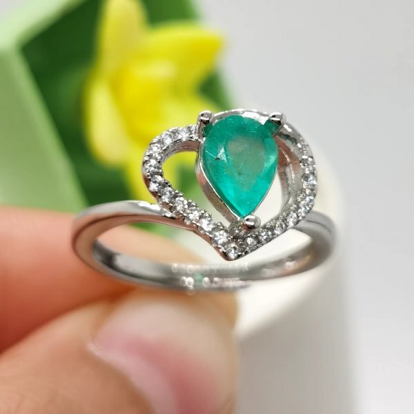 《証明書付き》925シルバー天然エメラルドリング、18kゴールドメッキ宝石宝飾品