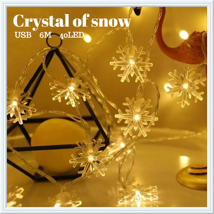 - 雪型 イルミネーションライト USB 6M 40LED 暖色