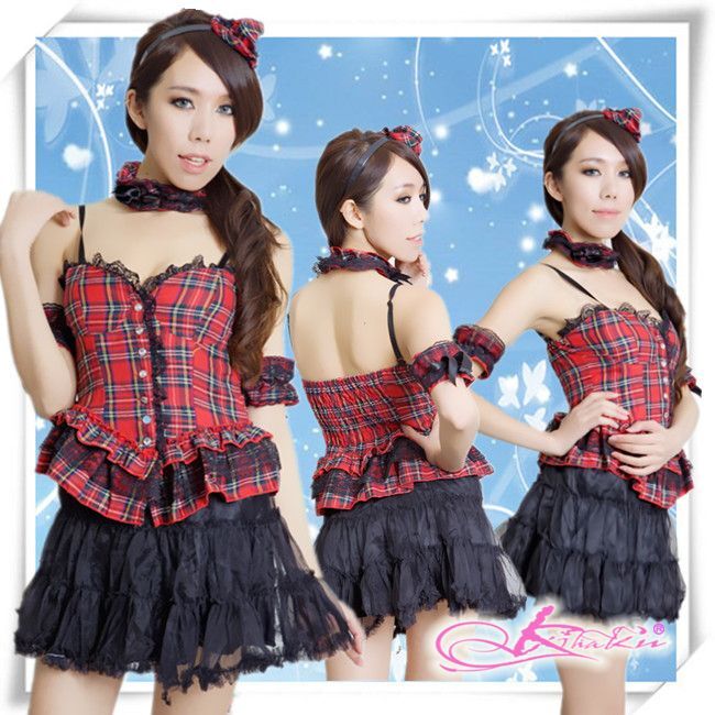 - 新品 未使用 送料無料bm57セクシートップ スカート チョーカー アームバンド×2 カチューシャ6点入りゴスロリドレス赤チェックシャーリング