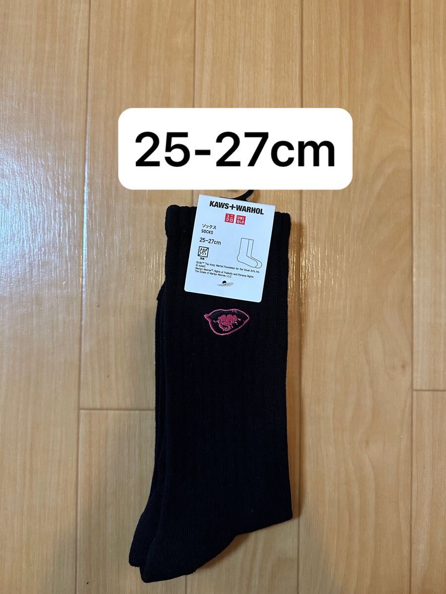 > 25cm-27cm UNIQLO KAWS+WARHOL SOCKS 09 Black ユニクロ カウズ ウォーホル ソックス ブラック 黒 赤