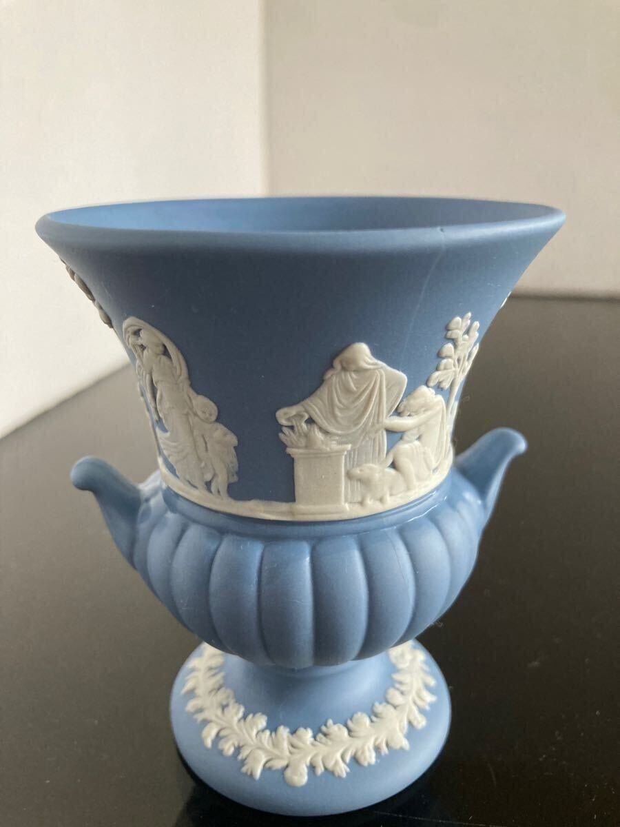 - WEDGWOOD ウェッジウッド ジャスパー ミニフラワーベース ペールブルー レリーフ模様 花瓶 ゴブレット 水差し