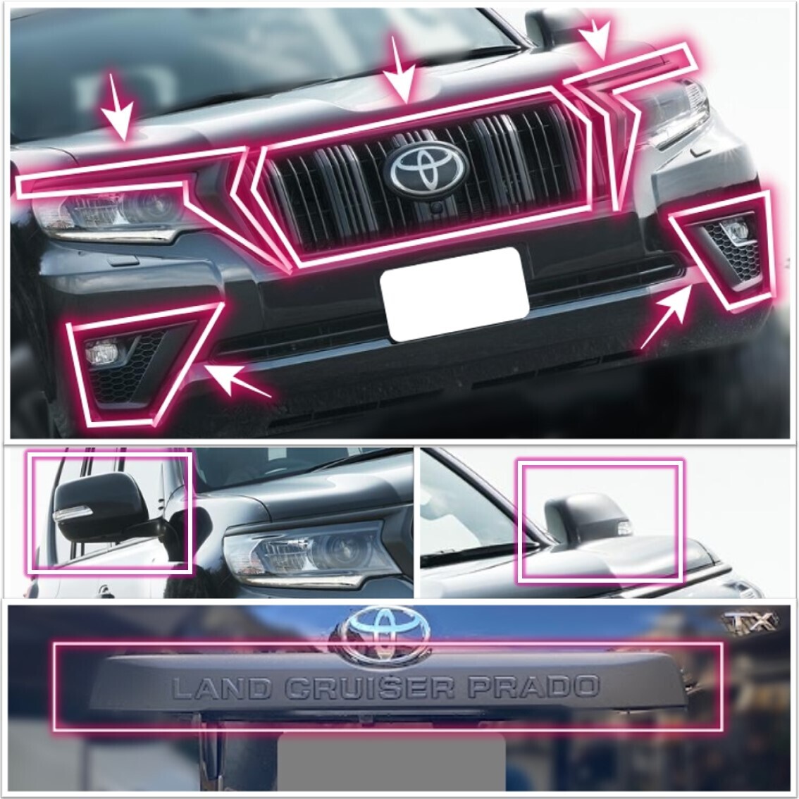 > ランクル プラド 150 マットブラック 8点 セット ラジエーター カバー 穴無し ガーニッシュ フォグ サイドミラーカバー バックガーニッシュ