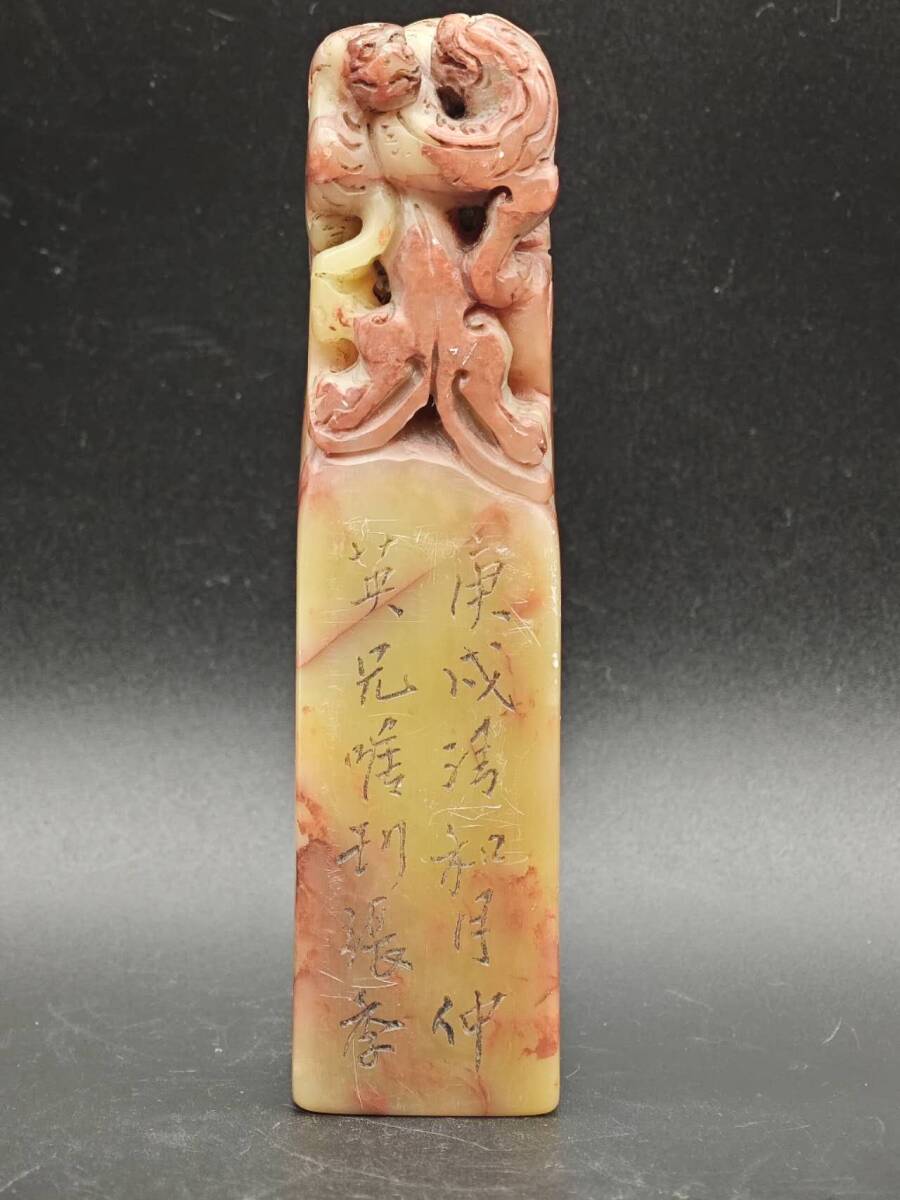 - 中国古美術 民国時代 著名篆刻家作 篆刻 蓮鳥鈕 凍寿山石 古印材 遊印 石印 彫刻 田黄 篆刻 金石 蘿蔔紋 文房具 置物 唐物(D-27)