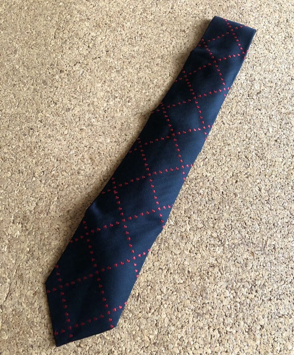 - MEN’S MELROSE メンズメルローズ ネクタイ 黒赤ダイヤ柄 ハート シルク 絹100%