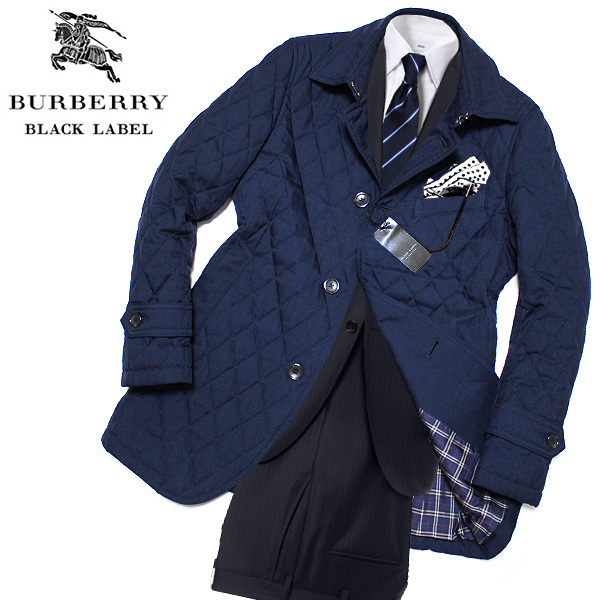 - 新品!M(2) 軽量・極暖!中綿入り★バーバリーブラックレーベル ノバチェック キルティングコート ジャケット 濃紺 BURBERRY BLACK LABEL
