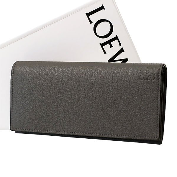 > 【送料無料】【本物】未使用★LOEWE★ロエベ★ロングホリゾンタルウォレット★グレインカーフ★グレー★二つ折り長財布★アナグラム★上品