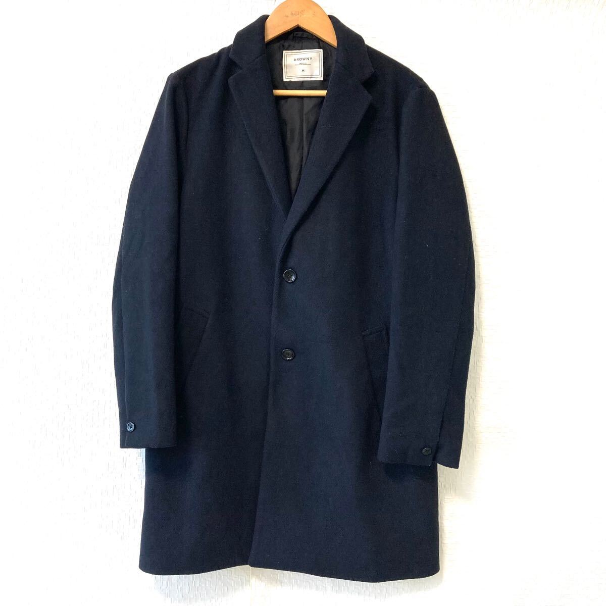 - 状態良好◎ 上質◎【BROWNY】ブラウニー ウール100% チェスターコート ロング丈 通学 通勤 シンプル 綺麗め ブラック メンズ M/Y18690UU