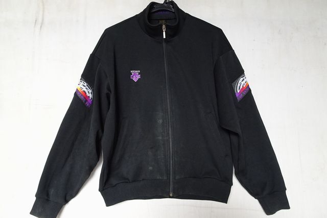 - DESCENTE/デサント/DBT-11/長袖トラックジャケット/ジャージ素材/前ジップアップ/袖柄生地切替/スポーツ/黒/ブラック/Oサイズ(10/17R)
