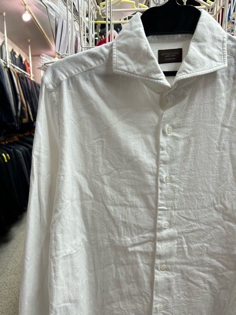 - HITOYOSHI 人吉 COMFORT 長袖シャツ ホリゾンタルカラー 無地 綿 日本製 白L