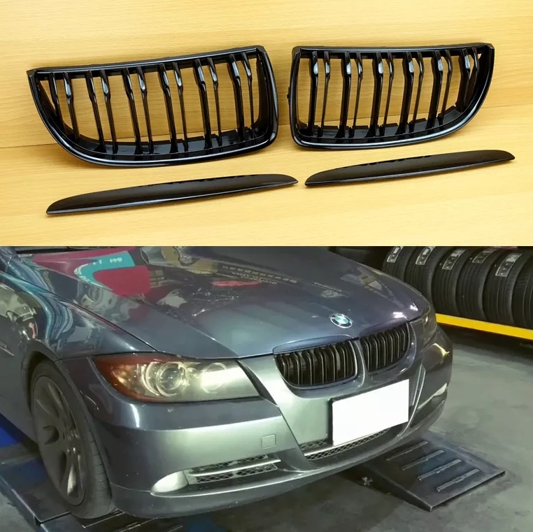 - 最上級品質▲BMW 3シリーズ E90 E91 前期専用 フロントグリル ブラック塗装済 ダブルバー 光沢黒 セット ABS製 2005-2008