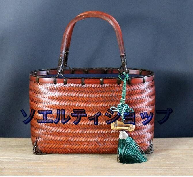 - 美品 手作り竹編み手提げバッグ竹節フリンジストラップ付き
