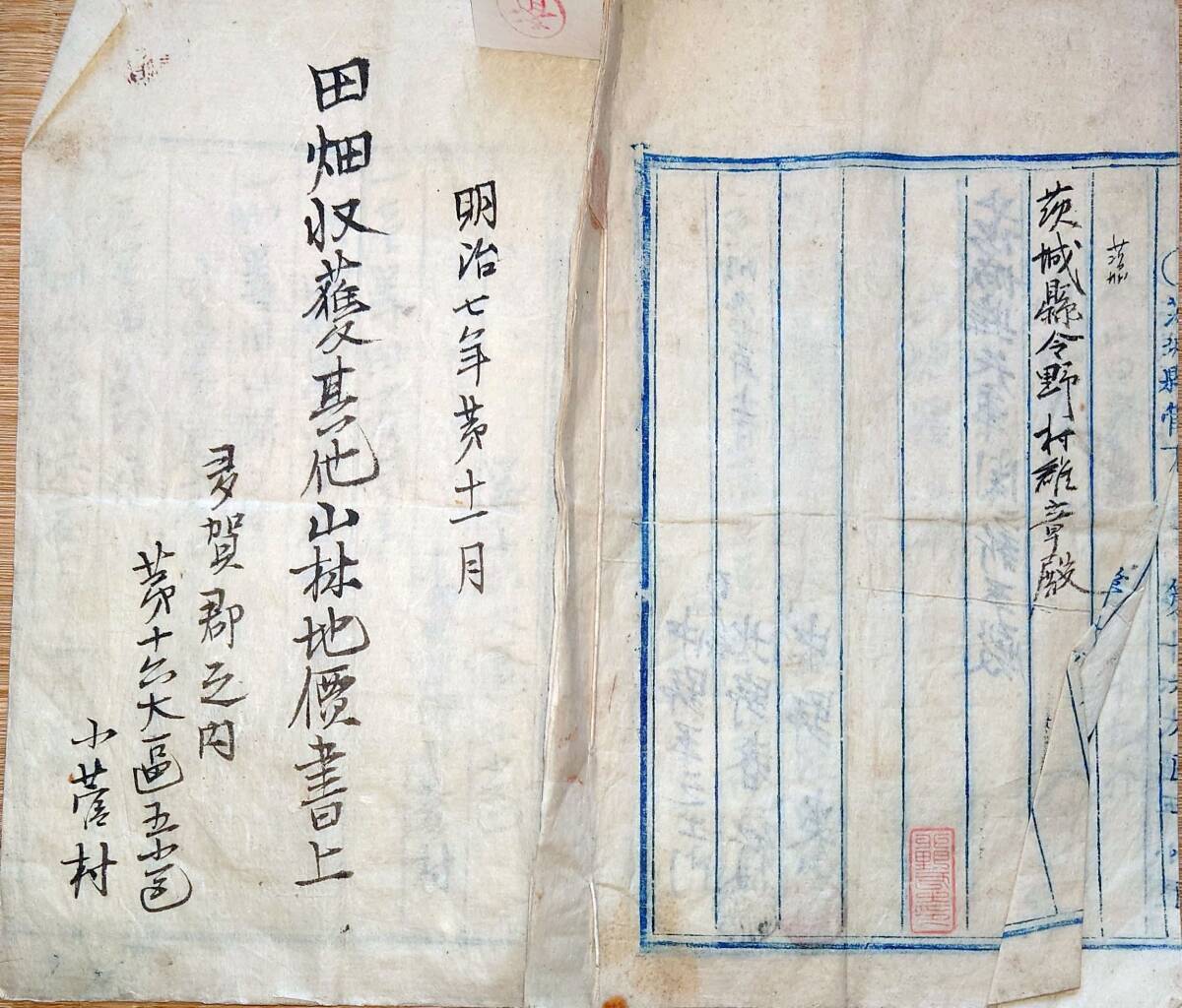- f24101821〇田畑収穫地価書上 茨城県多賀郡小菅村 明治7年〇和本古書古文書