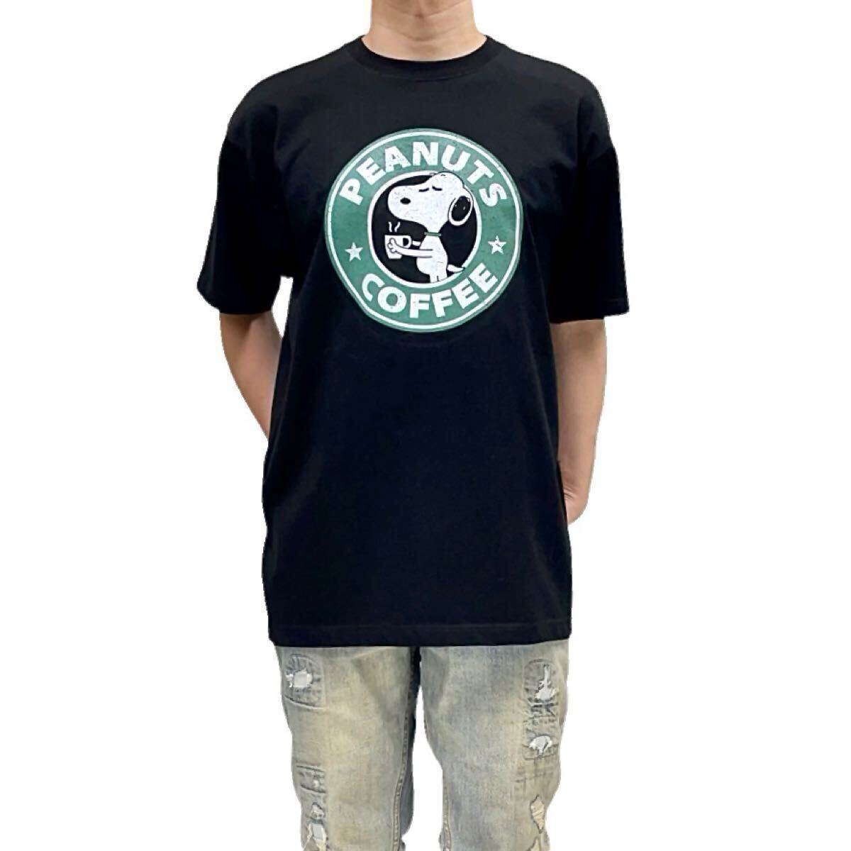 - 新品 SNOOPY スヌーピー スタバ コーヒー ピーナッツ コミック パロディ 掠れ ビンテージ風 ロゴ ビッグ Tシャツ オーバーサイズ 3XL(4L)