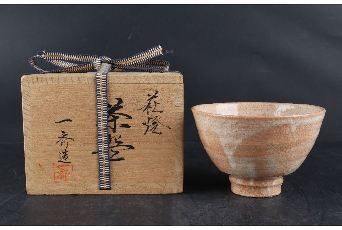 > [ギャラ藤]真作保証/萩殿窯/斎藤一斉 造「萩焼茶碗」/共箱/B-498(検)骨董/茶器/茶碗/急須/茶托/置物/茶道具/割烹/抹茶碗/萩焼