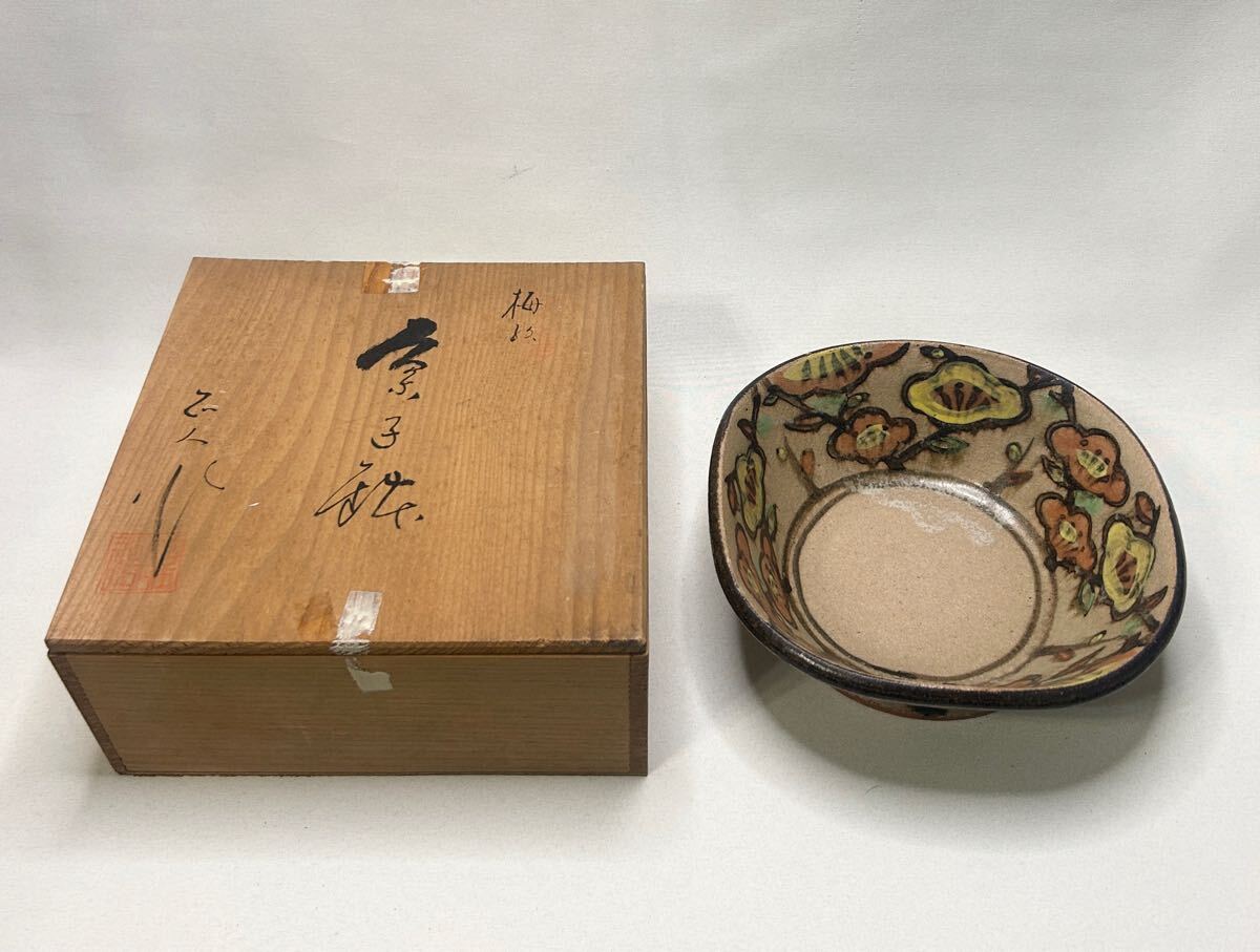 - 梅紋 菓子器 乾山風 在銘 鉢 骨董 茶道具 陶芸 木箱