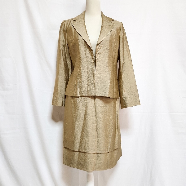 > #anc レリアン Leilian スカートスーツ 11 ゴールド系 セットアップ ツーピース 重ね着風 テーラード レディース [777805]