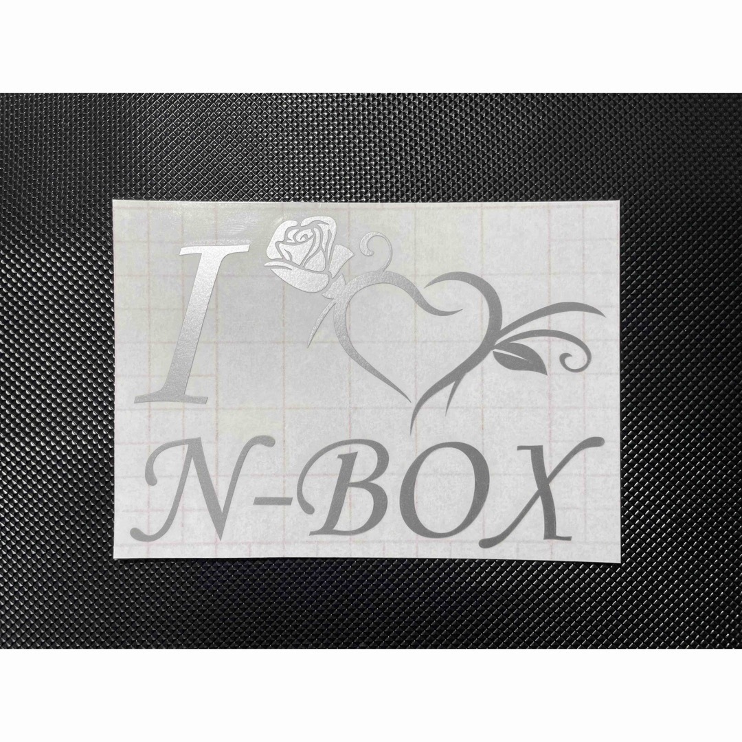 - 車種名変更可 アイラブ Nボックス 薔薇 愛車 ステッカー シール カッティングステッカー 銀色