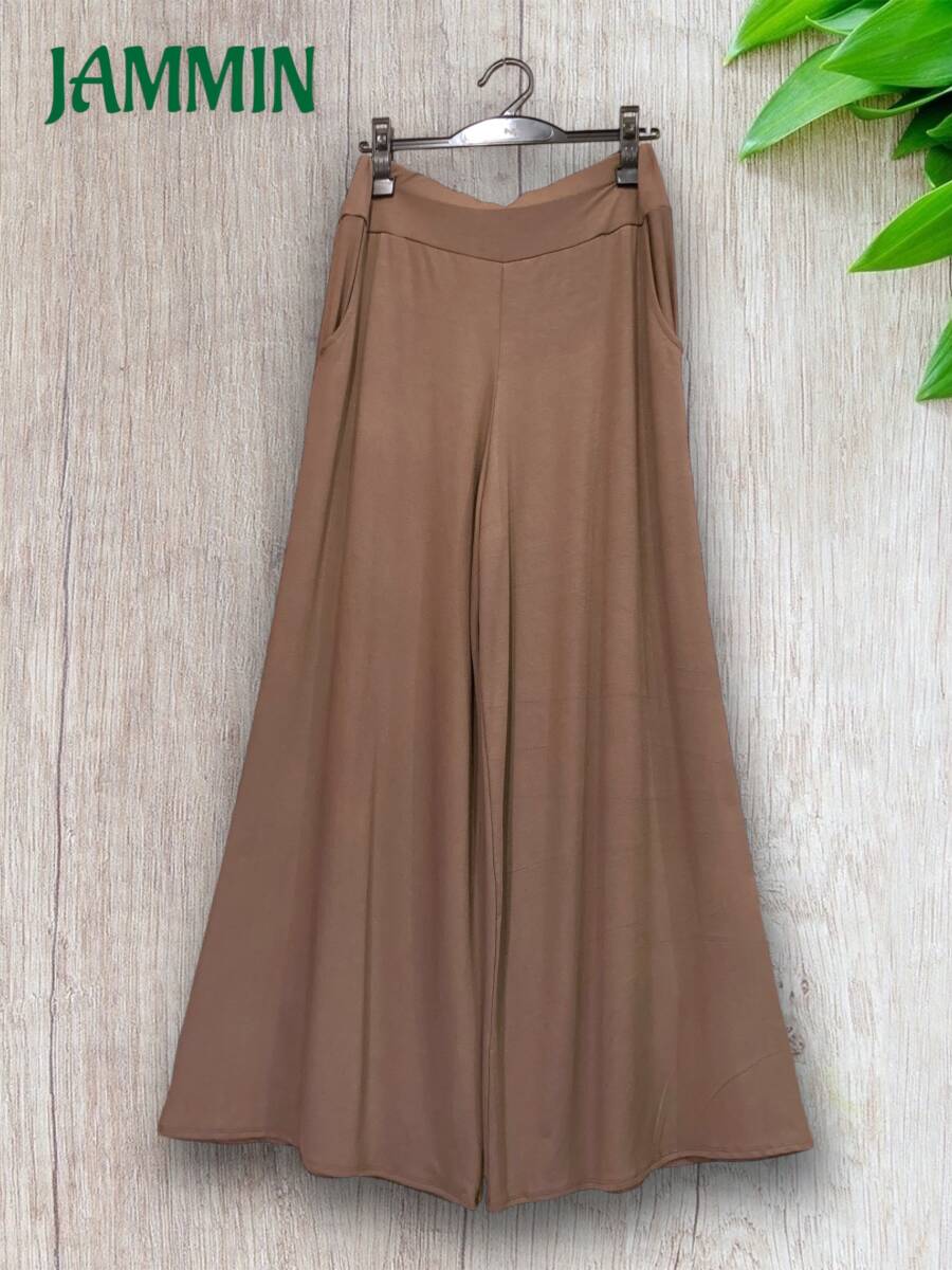 - ストレッチワイドパンツ ベージュ スパンデックス アジアン ヨガ