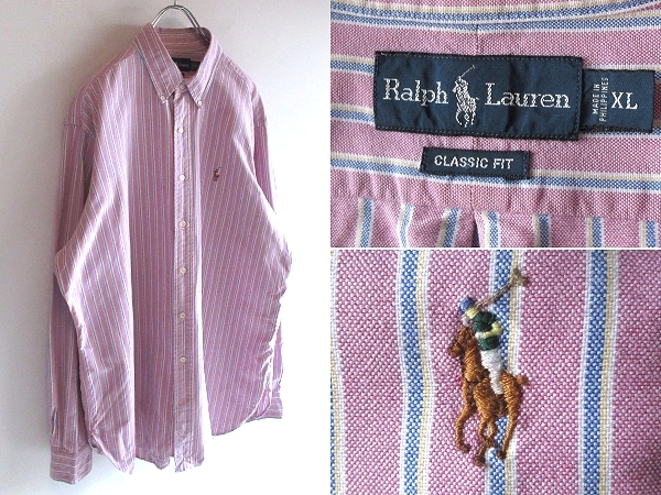 > 希少 00sビンテージ Ralph Lauren ラルフローレン CLASSIC FIT ロゴ刺繍 ストライプ オックスフォード BDシャツ XL RN41381正規品 USA企画