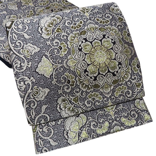 - 袋帯 中古 リサイクル 正絹 フォーマル 仕立て上がり 六通 花紋 華文 箔糸 黒鳶色 金 きもの北條 A1102-12