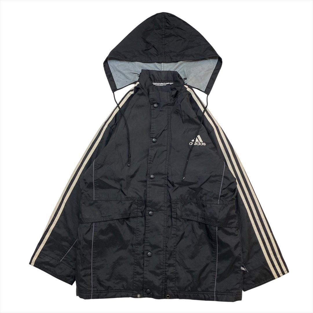 > アディダス アウター ブラック adidas 古着 メンズ FREE ナイロンアウター フード付き スポーツ ストリート クリーニング済み