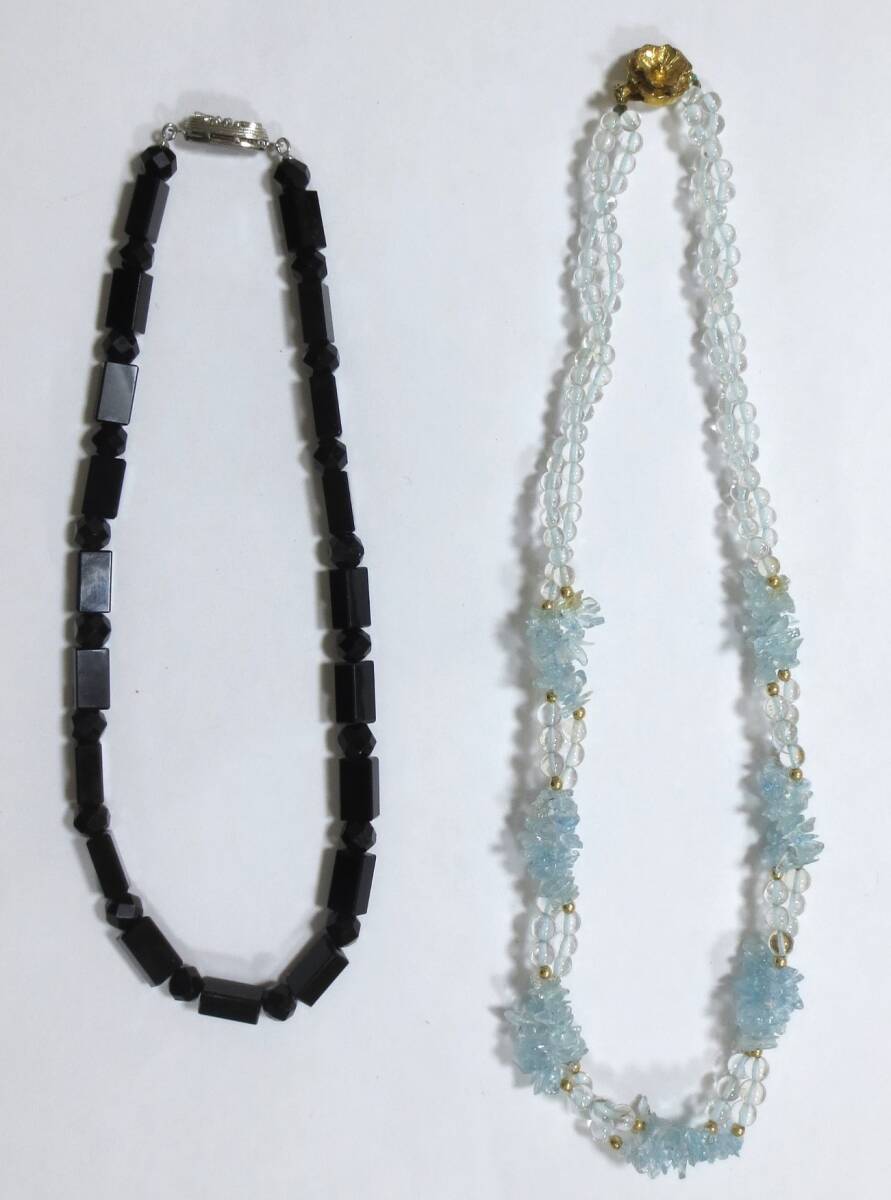 - ★ 薄いライトブルーの水晶2連ネックレスとブラックオニキスのネックレス 2本分 留め具シルバー刻印 キレイ! ★